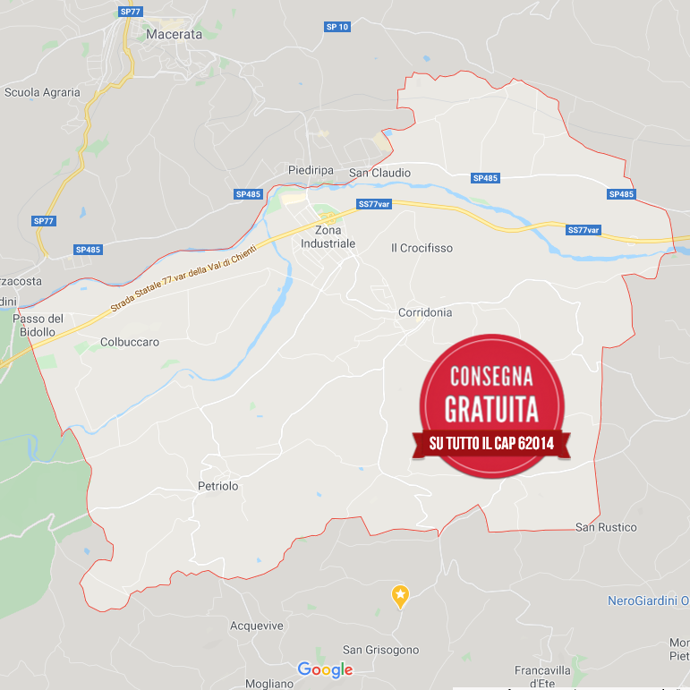 Il servizio di consegna a domicilio è attivo su tutto il CAP 62014 incluse le frazioni di: